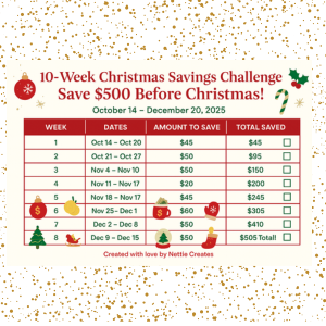 Ready to make holiday magic without the financial stress? This 10-week challenge is designed to help you save over $500 by Christmas—one small step at a time.